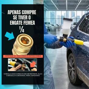 Mini Canhão de Espuma Snow Foam a Gravidade - 100ml Engate Rápido 1/4Maximize a eficiência da sua lavagem com o Mini Canhão de Espuma a Gravidade Se você busca um detalhamento automotivo de alta precisão, o modelo Mini Foam a Gravidade é a escolha ideal. Diferente dos canhões convencionais, seu sistema de alimentação por gravidade garante o aproveitamento de 100% do shampoo, eliminando o desperdício de produto que costuma ficar no fundo do reservatório. Perfeito para lavagem de motos, bicicletas e detalhes específicos em veículos, oferecendo leveza e controle total. - Características Sistema de alimentação por gravidade Regulador de fluxo para ajuste da espuma Controle do formato do jato leque ou reto Design ergonômico e compacto Engate rápido 1/4 Reservatório com marcação de volume - Benefícios Espuma mais densa e eficiente Maior economia de shampoo automotivo Reduz o atrito na lavagem, evitando riscos Aplicação rápida e uniforme Fácil instalação e utilização - Especificações Técnicas Capacidade do reservatório: 100 ml Conexão: engate rápido 1/4 Compatibilidade: lavadoras de alta pressão 95% dos modelos Categoria: acessórios para lavadora de alta pressão