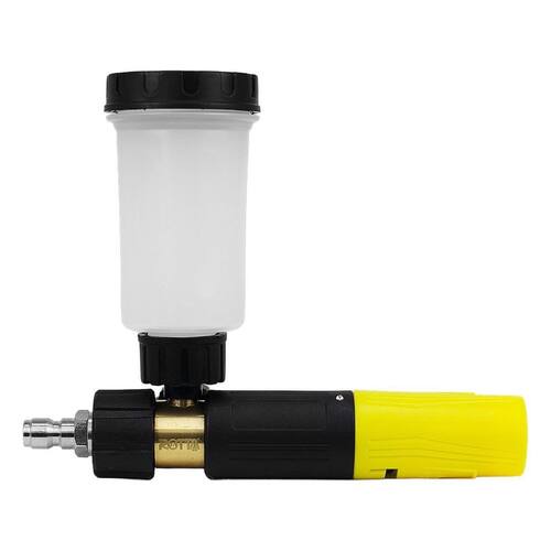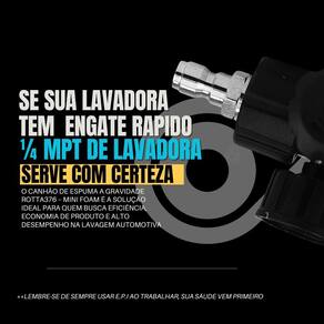 Mini Canhão de Espuma Snow Foam a Gravidade - 100ml Engate Rápido 1/4Maximize a eficiência da sua lavagem com o Mini Canhão de Espuma a Gravidade Se você busca um detalhamento automotivo de alta precisão, o modelo Mini Foam a Gravidade é a escolha ideal. Diferente dos canhões convencionais, seu sistema de alimentação por gravidade garante o aproveitamento de 100% do shampoo, eliminando o desperdício de produto que costuma ficar no fundo do reservatório. Perfeito para lavagem de motos, bicicletas e detalhes específicos em veículos, oferecendo leveza e controle total. - Características Sistema de alimentação por gravidade Regulador de fluxo para ajuste da espuma Controle do formato do jato leque ou reto Design ergonômico e compacto Engate rápido 1/4 Reservatório com marcação de volume - Benefícios Espuma mais densa e eficiente Maior economia de shampoo automotivo Reduz o atrito na lavagem, evitando riscos Aplicação rápida e uniforme Fácil instalação e utilização - Especificações Técnicas Capacidade do reservatório: 100 ml Conexão: engate rápido 1/4 Compatibilidade: lavadoras de alta pressão 95% dos modelos Categoria: acessórios para lavadora de alta pressão