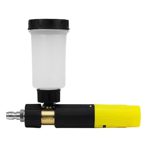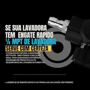 Mini Canhão de Espuma Snow Foam a Gravidade - 100ml Engate Rápido 1/4Maximize a eficiência da sua lavagem com o Mini Canhão de Espuma a Gravidade Se você busca um detalhamento automotivo de alta precisão, o modelo Mini Foam a Gravidade é a escolha ideal. Diferente dos canhões convencionais, seu sistema de alimentação por gravidade garante o aproveitamento de 100% do shampoo, eliminando o desperdício de produto que costuma ficar no fundo do reservatório. Perfeito para lavagem de motos, bicicletas e detalhes específicos em veículos, oferecendo leveza e controle total. - Características Sistema de alimentação por gravidade Regulador de fluxo para ajuste da espuma Controle do formato do jato leque ou reto Design ergonômico e compacto Engate rápido 1/4 Reservatório com marcação de volume - Benefícios Espuma mais densa e eficiente Maior economia de shampoo automotivo Reduz o atrito na lavagem, evitando riscos Aplicação rápida e uniforme Fácil instalação e utilização - Especificações Técnicas Capacidade do reservatório: 100 ml Conexão: engate rápido 1/4 Compatibilidade: lavadoras de alta pressão 95% dos modelos Categoria: acessórios para lavadora de alta pressão