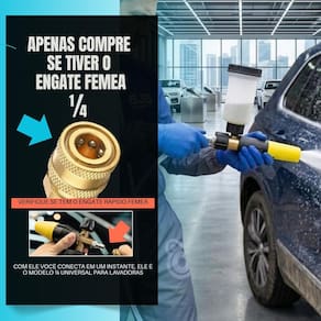Mini Canhão de Espuma Snow Foam a Gravidade - 100ml Engate Rápido 1/4Maximize a eficiência da sua lavagem com o Mini Canhão de Espuma a Gravidade Se você busca um detalhamento automotivo de alta precisão, o modelo Mini Foam a Gravidade é a escolha ideal. Diferente dos canhões convencionais, seu sistema de alimentação por gravidade garante o aproveitamento de 100% do shampoo, eliminando o desperdício de produto que costuma ficar no fundo do reservatório. Perfeito para lavagem de motos, bicicletas e detalhes específicos em veículos, oferecendo leveza e controle total. - Características Sistema de alimentação por gravidade Regulador de fluxo para ajuste da espuma Controle do formato do jato leque ou reto Design ergonômico e compacto Engate rápido 1/4 Reservatório com marcação de volume - Benefícios Espuma mais densa e eficiente Maior economia de shampoo automotivo Reduz o atrito na lavagem, evitando riscos Aplicação rápida e uniforme Fácil instalação e utilização - Especificações Técnicas Capacidade do reservatório: 100 ml Conexão: engate rápido 1/4 Compatibilidade: lavadoras de alta pressão 95% dos modelos Categoria: acessórios para lavadora de alta pressão Marca: Não Informado