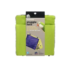 Hang in cage to give birds a snug, warm hideaway Stiff sides, soft fleece interior, hanging ties Hand-washable Assorted colors Prevue Pet Products snuggle hut 1163G is tent like shelter that offers birds a place to hide, play and sleep. Plastic inserts in bottom and sides help maintain shape. Fabric is machine washable. Sewn in hooks allow for easy insertion into cage. Available in assorted colors and machine washable. Hut measures 7" Long, 4 1/4 " Wide and 8 1/4" High.