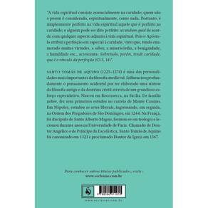 \"A vida espiritual consiste essencialmente na caridade; quem não a possui é considerado, espiritualmente, como nada. Portanto, é simplesmente perfeito na vida espiritual aquele que é perfeito na caridade; e alguém pode ser dito perfeito secundum quid de acordo com qualquer aspecto adjunto à vida espiritual. Pois o Apóstolo atribui a perfeição em especial à caridade, visto que, tendo enumerado muitas virtudes, a saber, a misericórdia, a benignidade, a humildade etc., acrescenta: Sobretudo, porém, tende caridade, que é o vínculo da perfeição (Cl 3, 14)\". SANTO TOMÁS DE AQUINO (12251274) é uma das personalidades mais importantes da filosofia medieval. Influenciou profundamente o pensamento ocidental por ter elaborado uma síntese da filosofia antiga e da doutrina cristã através de um grandioso esforço especulativo. Nasceu em Roccasecca, na Sicília. De família nobre, fez seus primeiros estudos no castelo de Monte Cassino. Em Nápoles, estudou as artes liberais, ingressando, em seguida, na Ordem dos Pregadores de São Domingos, em 1244. Na França, foi discípulo de Santo Alberto Magno, formou-se em teologia e lecionou durante anos na Universidade de Paris. Chamado de Doutor Angélico e de Príncipe da Escolástica, Santo Tomás de Aquino foi canonizado em 1323 e proclamado Doutor da Igreja em 1567.