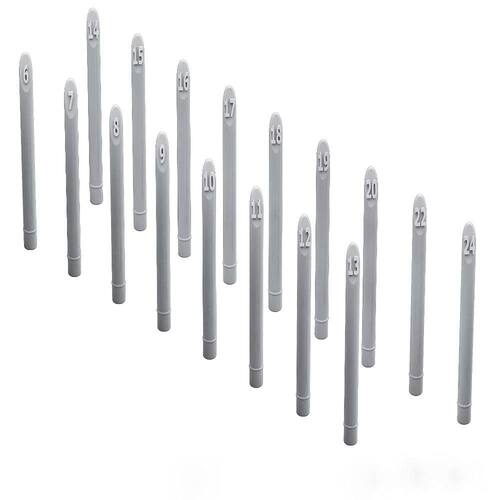 - O kit contém 14 hastes de tamanho métrico: cada unidade do kit comporta até 17 hastes de tamanho métrico. O kit inclui: tamanhos de 6, 7, 8, 9, 10, 11 12, 13, 14, 15, 16, 17, 18, 19, 20, 22, 24 mm.