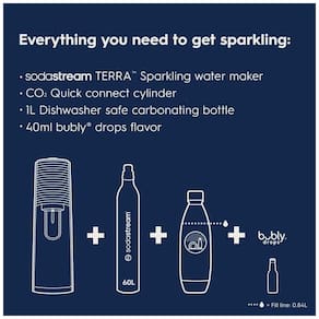 Nome do Modelo: SodaStream Terra Sparkling Water Maker (Blue) com CO2, Garrafa DWS e Bubly Drop,