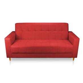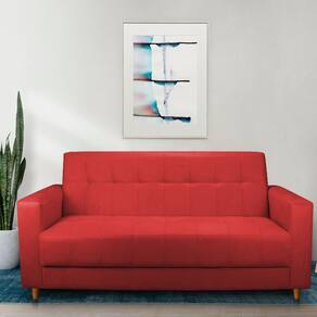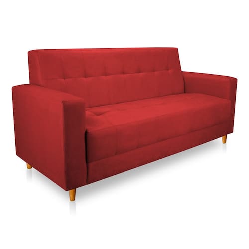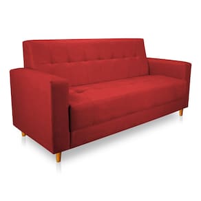Sofá 03 Lugares 180cm Atenas Suede Vermelho Pés Castanho - Pallazio