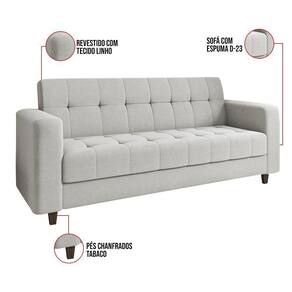 O Sofá Arezzo é um estofado extremamente luxuoso, perfeito para compor a composição da sua décor. Mesmo com essa versatilidade e facilidade de combinar com outros elementos do cômodo, ele ainda sim, consegue ser o grande destaque do ambiente. Com um design moderno, elegante e de linhas retas, perfeito para quem busca uma proposta mais sofisticada para a sala de estar. Este sofá ainda traz uma cor extremamente impactante no tom Cinza A05, deixando o móvel com um estilo ainda mais refinado. Produzido com materiais de máxima qualidade, começando pela estrutura em madeira de reflorestamento, afinal, acreditamos que podemos oferecer peças lindas sem prejudicar o meio ambiente. Possui percintas elásticas e pés chanfrados tabaco, que garantem durabilidade e alta resistência. Conta com estofamento em espuma de alta densidade D-23, revestimento em Fibra siliconizada no tecido Linho, um material com um aspecto aveludado, macio e resistente. Vale a pena lembrar que antes de ser escolhido o modelo ideal, é importante sempre levar em consideração o tecido, se são anti-ácaros e anti- alérgicos. Afinal, só quem tem alergia sabe o incômodo que é, não é mesmo!? Portanto, se você é uma pessoa que tem a pele mais sensível a certos tipos de tecidos, aqui você não precisa ter medo de investir em nosso Sofá Arezzo! Nossos produtos são pensados e desenvolvidos com muito carinho, preservando seu conforto e sua saúde. Demais né!? Invista sem medo e garanta o seu!