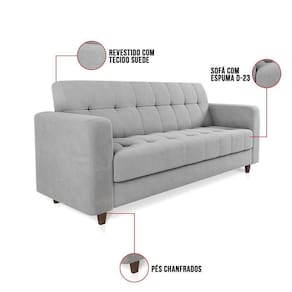 Sofá 03 Lugares Arezzo Suede Pés Chanfrado Tabaco - D`rossi Cor Cinza