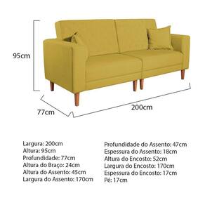 Sofá 03 Lugares Living Ponza Suede Cor Amarelo