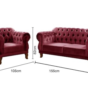 A entrega é realizada no térreo. Produto Montado: Sim Acompanha Almofadas extras: Não Almofada do assento: Removível Almofada do encosto: Não Possui Altura do assento até o chão: 0.0000 Altura do Encosto: 82 cm Ambiente Principal: Sala de Estar codigo_ean: 7909903854884 Complexidade da Montagem: Baixa: pode ser montado por uma pessoa sozinha Cor: Bordô Cor do Produto: Bordô Estilo de Braço: Braços Redondos Informações Complementares: 120Kg por acento Itens Inclusos: 1 Sofá 3 Lugares + 1 Sofá 2 Lugares (incluindo seus respectivos pés apenas pra enroscar) Linha ou Coleção: Chesterfield Necessita Montagem: Sim Origem do Produto: Nacional Peso: 90 kg Pet Friendly: Não Possui Percintas Elásticas: Sim Possui Pés: 04 Possui Rodízio: Não Quantidade de Itens: 2 Recomendações de Uso, Manutenção e Limpeza: Limpeza e cuidados: pode ser utilizado aspirador de pó, escova com cerdas macias ou limpeza a seco. Não utilizar produtos químicos, abrasivos ou limpeza a vapor. Evitar exposição prolongada ao sol. Sistema de Montagem: Enroscar os Pés Suporta Até (kg): 120 kg Tecido Predominante: Suede Tipo de Encosto: Fixo Tipo de Mola: Molas Ensacadas (Molas ensacadas)