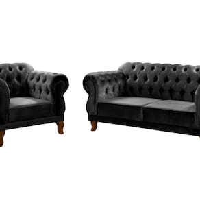 Sofá 2 e 1 Lugares Duquesa Decoração Sala Recepção Retrô Preto