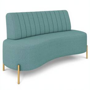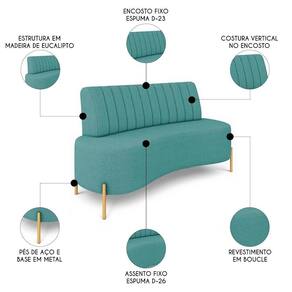 Sofá 2 Lugares 135cm Pés Aço Dourado Tamar Boucle Azul Z08 - Mpozenato