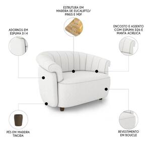 Com pés em madeira 6cm, revestimento em boucle, o visual fica sofisticado, com textura agradável e toque suave, perfeito para compor qualquer decoração com bom gosto.