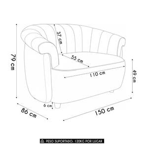 Dimensões do Produto Largura: 150 cm. Altura: 79 cm. Profundidade: 86 cm. Peso: 39 Kg.