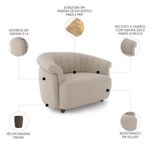Com pés em madeira 6cm, revestimento em veludo, o visual fica sofisticado, com textura agradável e toque suave, perfeito para compor qualquer decoração com bom gosto.