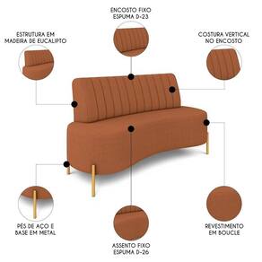 Sofá 2 Lugares 160cm Pés Aço Dourado Tamar Boucle Terracota Z08 - Mpozenato