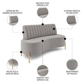 Sofá 2 Lugares 160cm Pés Aço Dourado Tamar Veludo Cinza Z08 - Mpozenato