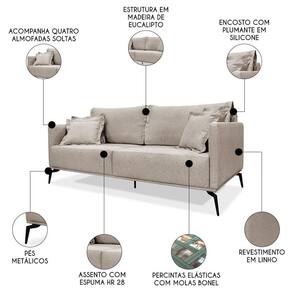 O Sofá 2 Lugares 160cm Pés de Metal Vecchia S06 Linho Areia, da Mpozenato é uma escolha excelente para quem procura conforto, qualidade e design contemporâneo.