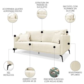 O Sofá 2 Lugares 180cm Pés de Metal Vecchia S06 Linho Pérola, da Mpozenato é uma escolha excelente para quem procura conforto, qualidade e design contemporâneo.