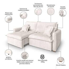 Assento: Retrátil, percintas elásticas italianas, molas bonel, espuma HR28 + plumante em silicone
