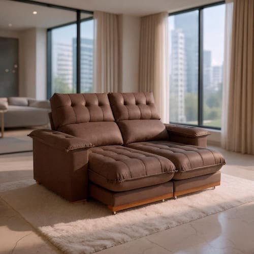O Sofá 2 Lugares 2,00m Retrátil e Reclinável Milano Bom Pastor é sinônimo de conforto e elegância. Produzido direto da fábrica, conta com molas ensacadas e espuma D33 que garantem maciez e durabilidade, além do exclusivo Mega Pillow Top de 30cm que proporciona aconchego extra. Seu sistema de catraca blindada permite ajustes precisos no encosto, enquanto o design bipartido facilita o transporte e a instalação. Com detalhe em madeira MDF, une sofisticação e resistência. Quando aberto, atinge 1,80m de profundidade, ideal para momentos de descanso completo.