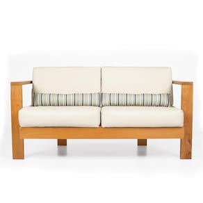 Fabricado em tecido de alta qualidade em Sarja Impermeável, seu enchimento é composto por manta fibra siliconada, estruturado por espuma ortopédica D33 para o assento e D23 para o encosto. A estrutura é produzida em madeira nobre de grápia com pintura na cor natural.