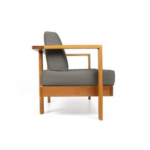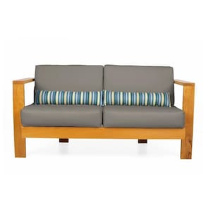 Fabricado em tecido de alta qualidade em Sarja Impermeável, seu enchimento é composto por manta fibra siliconada, estruturado por espuma ortopédica D33 para o assento e D23 para o encosto. A estrutura é produzida em madeira nobre de grápia com pintura na cor natural.