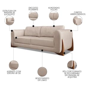 O Sofá 2 Lugares Base de Madeira 160cm Izzy S06 Linho Areia, da Mpozenato é uma expressão de conforto e elegância, projetada para ser mais do que um simples assento.