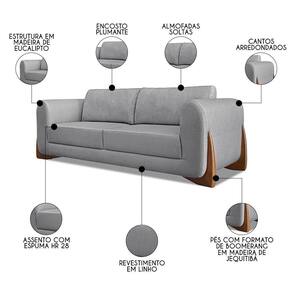 O Sofá 2 Lugares Base de Madeira 160cm Izzy S06 Linho Cinza, da Mpozenato é uma expressão de conforto e elegância, projetada para ser mais do que um simples assento.