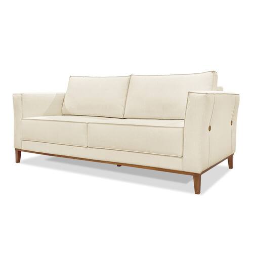 Sofá 2 Lugares Base de Madeira Grace 190 cm Linho Natural S04 - D`Rossi - Bege Claro