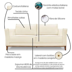 Tipo de Assento: Fixo com percintas elásticas italiana, molas bonel e espuma HR28