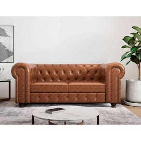 O sofá 2 lugares ou mais Chesterfield Jared é item clássico do mobiliário Inglês, cujo design icônico já existe há 200 anos . É imediatamente reconhecível em sua aparência e complementa perfeitamente qualquer ambiente , sala de estar, recepções , escritórios... Em revestimento de couro facto marrom de alta qualidade , pés de madeira de eucalipto confeccionados exclusivamente para compor a perfeição desse sofá exuberante. Assento com espuma semi soft- D 28 deixando o além de lindo, super macio e confortável. Acompanha Almofadas extras: Não Almofada do assento: Removível Almofada do encosto: Fixa Altura do assento até o chão: 45 cm Altura do Encosto: 40 cm Altura dos Pés: 10 cm Ambiente Principal: Sala de Estar Cor: Marrom Cor do Produto: Marrom Densidade do Assento: D-28 Densidade do Encosto: D-28 Enchimento do Assento: Espuma Enchimento do Encosto: Espuma Estilo de Braço: Braços Redondos Firmeza do Assento: Médio Itens Inclusos: 1 Sofá Material dos Pés: Madeira Eucalipto Necessita Montagem: Não Origem do Produto: Nacional Peso: 65 kg Pet Friendly: Não Possui Percintas Elásticas: Sim Possui Pés: 04 Possui Rodízio: Não Recomendações de Uso, Manutenção e Limpeza: Limpar suavemente com pano umedecido em água, de maneira uniforme, secando-o com pano. Revestimento do Braço: Madeira Eucalipto, Espuma D28 Tecido sintético Suporta Até (kg): 130 kg Tecido Predominante: Couro Sintético Tipo de Encosto: Fixo Tipo de Mola: Não Possui Ean: 7909903413159