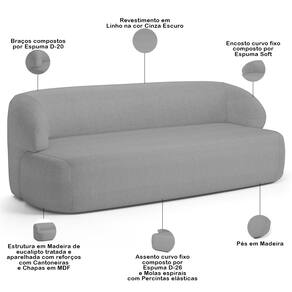 Sofá 2 Lugares Curvo Orgânico Para Sala Living 150cm Barolo L06 Linho Cinza Escuro - Lyam Decor