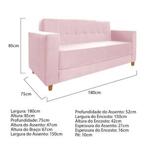 Sofá 2 Lugares Denver Suede Rosa Bebê - Doce Sonho Móveis Muito além de decorar um ambiente, na atualidade, poltronas ocupam um lugar de destaque nos mais diversos lares, pois, geralmente transmitem o que há de mais singular na personalidade de quem as escolhe. Com o Sofá Denver, essa singularidade é expressa através de sofisticação, qualidade e bom gosto! Projetado para atender sua expectativa, apresentando estilo clássico, sem deixar de ser moderno, o Sofá Denver foi feito para você que preza conforto e bem estar, além de requinte e distinção. Não perca essa oportunidade e adquira já o seu! Especificações Técnicas do Sofá Denver: - Altura: 85 cm; - Largura: 180 cm; - Profundidade: 75 cm; - Altura do Assento: 47 cm; - Altura do Braço: 67 cm; - Largura do Assento: 150 cm; - Profundidade do Assento: 52 cm; - Largura do Encosto: 150 cm; - Altura do Encosto: 42 cm; - Espessura do Assento: 21 cm; - Espessura do Encosto: 16 cm; - Altura do Pé: 10 cm. - Peso: 35 kg. - Peso Suportado: 240 kg. Diferenciais do Sofá Denver: - Material da Estrutura: fabricado com Madeira Pinus e Eucalipto, e alguns detalhes em MDF; - Tipo de Assento: estofado e com espuma de densidade D-26; - Tipo de Encosto: estofado e com espuma de densidade D-18; - Detalhes dos Pés: acompanha kit de pés (4 pés) de madeira, no estilo quadrado na cor mel, com alta resistência; - Volumes: um único produto. Recomendações de limpeza: -Limpar com flanela limpa e seca. Não molhar o móvel e não expor em lugar úmido ou próximo de fontes de calor. Observações Importantes: - As imagens ambientadas são meramente ilustrativas e podem apresentar itens que não compõe o produto; - Objetos decorativos que aparecem na foto não acompanham o produto; - As cores do produto podem variar de acordo com o monitor, a iluminação do ambiente, ou sua percepção visual; - o Sofá Denver bastando rosquear os pés; -; - (); - Produto para residencial em ambiente interno, não devendo ficar exposto diretamente ao sol, calor e umidades excessivas. undefined
