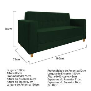 Muito além de decorar um ambiente, na atualidade, poltronas ocupam um lugar de destaque nos mais diversos lares, pois, geralmente transmitem o que há de mais singular na personalidade de quem as escolhe. Com o Sofá Denver, essa singularidade é expressa através de sofisticação, qualidade e bom gosto! Projetado para atender sua expectativa, apresentando estilo clássico, sem deixar de ser moderno, o Sofá Denver foi feito para você que preza conforto e bem estar, além de requinte e distinção. Não perca essa oportunidade e adquira já o seu! Especificações Técnicas do Sofá Denver: - Altura: 85 cm; - Largura: 180 cm; - Profundidade: 75 cm; - Altura do Assento: 47 cm; - Altura do Braço: 67 cm; - Largura do Assento: 150 cm; - Profundidade do Assento: 52 cm; - Largura do Encosto: 150 cm; - Altura do Encosto: 42 cm; - Espessura do Assento: 21 cm; - Espessura do Encosto: 16 cm; - Altura do Pé: 10 cm. - Peso: 35 kg. - Peso Suportado: 240 kg. Diferenciais do Sofá Denver: - Material da Estrutura: fabricado com Madeira Pinus e Eucalipto Reflorestada, e alguns detalhes em MDF; - Tipo de Assento: estofado e com espuma de densidade D-26; - Tipo de Encosto: estofado e com espuma de densidade D-18; - Detalhes dos Pés: acompanha kit de pés (4 pés) de madeira, no estilo quadrado na cor mel, com alta resistência; - Volumes: nessa compra você receberá um único produto. Recomendações de limpeza: -Limpar com flanela limpa e seca. Não molhar o móvel e não expor em lugar úmido ou próximo de fontes de calor. Não usar produtos abrasivos. Observações Importantes: - As imagens ambientadas são meramente ilustrativas e podem apresentar itens que não compõe o produto; - Objetos decorativos que aparecem na foto não acompanham o produto; - As cores do produto podem variar de acordo com o monitor, a iluminação do ambiente, ou sua percepção visual; - o Sofá Denver chegará desmontado para você, bastando rosquear os pés; - Confira as dimensões antes da compra e certifique-se de que o produto passará por elevadores, portas e corredores, já que nossa não inclui a subida de lances de escada, ou o de produtos; - Ao receber seus produtos, verifique no ato do qualquer dano na embalagem. Caso tenha alguma , favor não assinar o de (A transportadora tem obrigação de esperar a conferência); - Produto para uso residencial em ambiente interno, não devendo ficar exposto diretamente ao sol, calor e umidades excessivas.