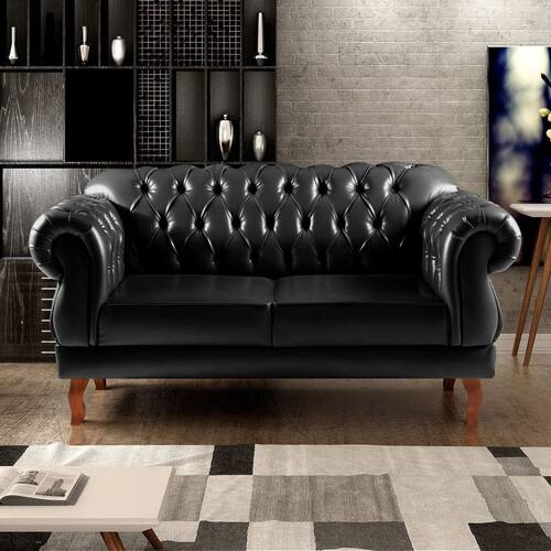Sofá 2 Lugares Duquesa Chesterfield Decoração Recepção Preto
