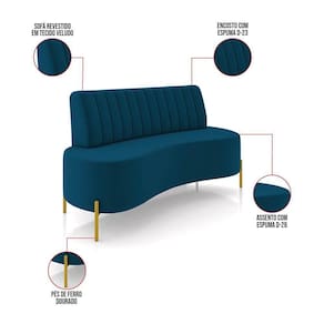 O Sofá 2 Lugares Maraú de 135 cm é uma peça que combina funcionalidade, conforto e durabilidade. Ele tem um design curvilíneo e sofisticado e revestimento em tecido Veludo Azul Marinho, que harmonizam com qualquer ambiente. Ele é ideal para sala de estar, escritório, recepção, salão de beleza, estúdio fotográfico ou em qualquer outro espaço que você queira decorar com estilo e bom gosto. Ele tem uma estrutura em madeira de Eucalipto Tratada Fixados em Chapas Conificadas, que garante a resistência e a sustentabilidade do produto. Ele suporta até 120 kg de peso, podendo ser utilizado por pessoas de diferentes biotipos. Ele tem um acabamento reforçado com espuma de densidade D-26 e Percintas Elásticas presente no Assento, no Encosto Fixo contém Espuma D-23 Com Percintas Elásticas, Pontos De Tensão Fixos Com Grampos Galvanizados. Os pés são de Ferro Dourado proporcionando um suporte confortável para o corpo, permitindo que você relaxe com facilidade após um longo dia. Seja lendo um livro, assistindo televisão ou simplesmente descansando, este sofá oferece o conforto necessário para momentos de tranquilidade. Uma das características mais distintivas do Sofá 2 Lugares Maraú é suas curvas e formas arredondadas e os detalhes do encosto com linhas retas gomada, garantindo aconchego ideal. O Sofá Maraú é um produto de alta qualidade, beleza e funcionalidade. Ele é fácil de transportar, pois tem um peso leve e um tamanho compacto. O Sofá Maraú é um produto que vai fazer a diferença na sua decoração e no seu bem-estar. Ele vai trazer charme, conforto e durabilidade para o seu ambiente. Aproveite essa oferta e leve para casa um móvel de qualidade por um preço incrível. Essa é a sua chance de ter um Sofá maravilhoso por um preço imperdível. Corra e garanta o seu antes que acabe o estoque!