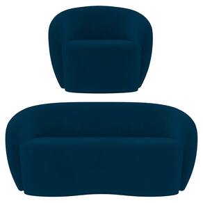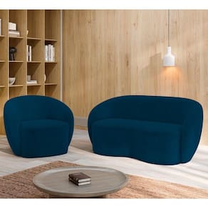O Sofá 2 Lugares Living 160cm e 1 Poltrona Giratória Garbin K04 Veludo Azul Marinho, da Mpozenato tem um Design Orgânico, combinando estética e funcionalidade com uma consciência ecológica.