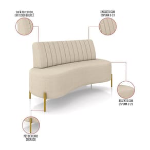 O Sofá 2 Lugares Maraú de 160 cm é uma peça que combina funcionalidade, conforto e durabilidade. Ele tem um design curvilíneo e sofisticado e revestimento em tecido Bouclê Creme, que harmonizam com qualquer ambiente. Ele é ideal para sala de estar, escritório, recepção, salão de beleza, estúdio fotográfico ou em qualquer outro espaço que você queira decorar com estilo e bom gosto. Ele tem uma estrutura em madeira de Eucalipto Tratada Fixados em Chapas Conificadas, que garante a resistência e a sustentabilidade do produto. Ele suporta até 120 kg de peso, podendo ser utilizado por pessoas de diferentes biotipos. Ele tem um acabamento reforçado com espuma de densidade D-26 e Percintas Elásticas presente no Assento, no Encosto Fixo contém Espuma D-23 Com Percintas Elásticas, Pontos De Tensão Fixos Com Grampos Galvanizados. Os pés são de Ferro Dourado proporcionando um suporte confortável para o corpo, permitindo que você relaxe com facilidade após um longo dia. Seja lendo um livro, assistindo televisão ou simplesmente descansando, este sofá oferece o conforto necessário para momentos de tranquilidade. Uma das características mais distintivas do Sofá 2 Lugares Maraú é suas curvas e formas arredondadas e os detalhes do encosto com linhas retas gomada, garantindo aconchego ideal. O Sofá Maraú é um produto de alta qualidade, beleza e funcionalidade. Ele é fácil de transportar, pois tem um peso leve e um tamanho compacto. O Sofá Maraú é um produto que vai fazer a diferença na sua decoração e no seu bem-estar. Ele vai trazer charme, conforto e durabilidade para o seu ambiente. Aproveite essa oferta e leve para casa um móvel de qualidade por um preço incrível. Essa é a sua chance de ter um Sofá maravilhoso por um preço imperdível. Corra e garanta o seu antes que acabe o estoque!