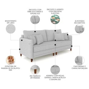 Sofá 2 Lugares Living 172cm Pé Madeira Zoe Linho Cinza Claro Z08 - Mpozenato