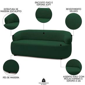 O Sofá 2 Lugares Living Orgânico Sala de Estar 140cm Conka F05 Veludo Verde, da Mpozenato é um produto que combina qualidade, beleza e conforto.