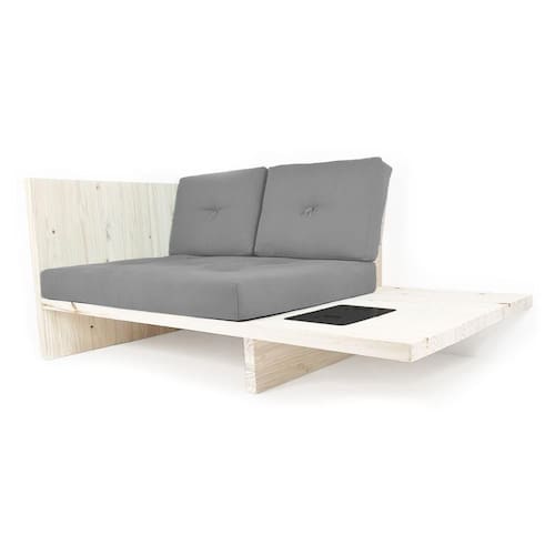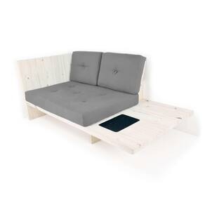Itens inclusos: 1 Almofada assento, 2 Almofadas Encosto, 1 sofá de Madeira de Pinus com porta copos.