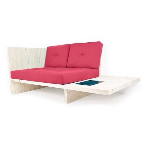 Itens inclusos: 1 Almofada assento, 2 Almofadas Encosto, 1 sofá de Madeira de Pinus com porta copos.