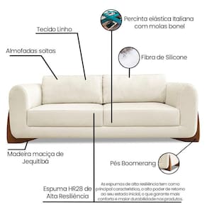 Assento: Fixo com percintas Elásticas Italiana, Molas Bonel e espuma HR28 + Plumante em Silicone