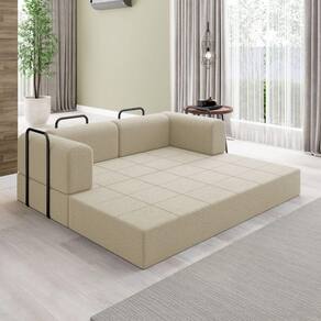 Sofá 2 Lugares Na Caixa Modular Linho Bege