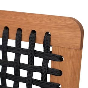 - Materiais: Estrutura em madeira de eucalipto maciço, encosto em corda trançada e assento estofado em Tecido Acquablock