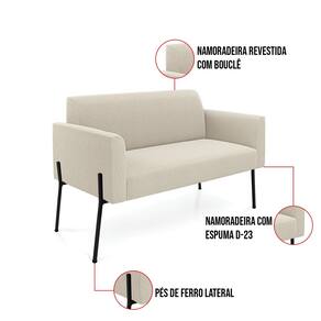 O Sofá Namoradeira 2 Lugares Marisa é a escolha perfeita para quem deseja unir conforto e comodidade em um estilo elegante. Com um design único, ele possui Pés de Ferro Lateral Preto que harmoniza com o seu belíssimo tom Bege, criando uma combinação elegante de conforto e estilo. Ele é perfeito para quem busca móveis que não só sejam bonitos, mas que também proporcionem bem-estar. Ideal para compor salas de estar, recepções, bibliotecas, salas de leitura, espaços de design e até áreas comerciais, essa peça versátil é pensada para ambientes que excluam beleza e aconchego. Sua estrutura, em madeira de reflorestamento de eucalipto, oferece resistência e sustentabilidade, suportando até 180 kg, garantindo segurança para usuários de diferentes biotipos. O conforto é outro destaque, com estofado em espuma prorelax D-23, que proporciona suporte e maciez ideais. Revestido em Bouclê, um tecido maleável e sofisticado, o Sofá Namoradeira 2 Lugares Marisa segue a tendência do momento com um toque suave e quente, remetendo à textura natural da lã. Leve e fácil de transportar, o Sofá Namoradeira 2 Lugares é um item que agrega charme e durabilidade ao seu espaço. Não perca a oportunidade de adquirir essa peça exclusiva que fará toda a diferença na sua decoração e no seu bem-estar. Aproveite agora e garanta o seu antes que o estoque acabe!