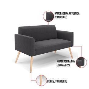 O Sofá Namoradeira 2 Lugares Marisa é a escolha perfeita para quem deseja unir conforto e comodidade em um estilo elegante. Com um design único, ele possui Pés Palito Natural que harmoniza com o seu belíssimo tom Grafite, criando uma combinação elegante de conforto e estilo. Ele é perfeito para quem busca móveis que não só sejam bonitos, mas que também proporcionem bem-estar. Ideal para compor salas de estar, recepções, bibliotecas, salas de leitura, espaços de design e até áreas comerciais, essa peça versátil é pensada para ambientes que excluam beleza e aconchego. Sua estrutura, em madeira de reflorestamento de eucalipto, oferece resistência e sustentabilidade, suportando até 180 kg, garantindo segurança para usuários de diferentes biotipos. O conforto é outro destaque, com estofado em espuma prorelax D-23, que proporciona suporte e maciez ideais. Revestido em Bouclê, um tecido maleável e sofisticado, o Sofá Namoradeira 2 Lugares Marisa segue a tendência do momento com um toque suave e quente, remetendo à textura natural da lã. Leve e fácil de transportar, o Sofá Namoradeira 2 Lugares é um item que agrega charme e durabilidade ao seu espaço. Não perca a oportunidade de adquirir essa peça exclusiva que fará toda a diferença na sua decoração e no seu bem-estar. Aproveite agora!