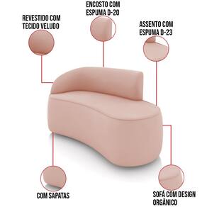 Sofá 2 Lugares Orgânico 140 cm Morgan Veludo D03 - D`Rossi - Rosê