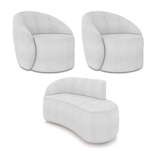O Kit Sofá 2 Lugares Orgânico 140cm Morgan e 2 Poltronas Lua é um verdadeiro convite ao relaxamento! Ele possui um design orgânico que remete às formas encontradas na natureza que além de se moldar ao corpo humano, evoca uma sensação de calma e equilíbrio criando um espaço acolhedor e relaxante. O revestimento desse maravilhoso conjunto conta com um tecido extremamente elegante no Bouclê, suportando em média até 180 kg de peso, podendo ser utilizado por pessoas de diferentes biotipos. A Poltrona Lua contém uma simetria artística e curvas suaves, ela contém uma Base Giratória com giro em 360 graus e uma estrutura em madeira de reflorestamento eucalipto, que garante a resistência e a sustentabilidade do produto. Ela tem um acabamento reforçado e espuma de qualidade D23, que oferece maciez e conforto. Ela contém detalhes de costura no encosto e um assento cilíndrico arredondado resultando em um acabamento perfeito conferindo muito mais valor e personalizado ao produto, oferecendo maior liberdade de movimento ao cliente. O Sofá Morgan por sua vez é uma combinação perfeita de conforto e estilo. Com uma estrutura robusta de madeira de eucalipto e MDF, este sofá garante durabilidade e resistência. Os assentos e encostos são fixos, o encosto é preenchido com espuma D-20, proporcionando suporte ideal para suas costas, enquanto o assento com espuma D-23 oferece uma experiência de assento firme e aconchegante. Seu formato curvo e sem braços traz um toque de modernidade, permitindo que o sofá se encaixe harmoniosamente em diversos estilos de decoração, desde o minimalista até o mais ousado. As sapatas plásticas são pequenas proteções colocadas na base dos pés do sofá para evitar que eles risquem ou danifiquem o chão. Além de proteger o piso, essas sapatas ajudam a distribuir o peso do sofá de maneira mais uniforme. Esse lindo conjunto pode ser utilizado em salas de estar, recepções, escritórios, lojas, espaços comerciais, ou qualquer outro espaço que você queira decorar com estilo e bom gosto. O kit Sofá Morgan e 2 Poltronas Lua é um produto que vai fazer a diferença na sua decoração e no seu bem-estar. Ele vai trazer charme, conforto e durabilidade para o seu ambiente. Corra e garanta a sua agora mesmo!