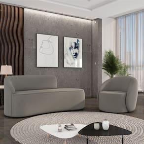 O Kit Sofá 2 Lugares Orgânico 140cm Morgan e Poltrona Lua é um verdadeiro convite ao relaxamento! Ele possui um design orgânico que remete às formas encontradas na natureza que além de se moldar ao corpo humano, evoca uma sensação de calma e equilíbrio criando um espaço acolhedor e relaxante. O revestimento desse maravilhoso conjunto conta com um tecido extremamente elegante no Suede Grafite, suportando em média até 180 kg de peso, podendo ser utilizado por pessoas de diferentes biotipos. A Poltrona Lua contém uma simetria artística e curvas suaves, ela contém uma Base Giratória com giro em 360 graus e uma estrutura em madeira de reflorestamento eucalipto, que garante a resistência e a sustentabilidade do produto. Ela tem um acabamento reforçado e espuma de qualidade D23, que oferece maciez e conforto. Ela contém detalhes de costura no encosto e um assento cilíndrico arredondado resultando em um acabamento perfeito conferindo muito mais valor e personalizado ao produto, oferecendo maior liberdade de movimento ao cliente. O Sofá Morgan por sua vez é uma combinação perfeita de conforto e estilo. Com uma estrutura robusta de madeira de eucalipto e MDF, este sofá garante durabilidade e resistência. Os assentos e encostos são fixos, o encosto é preenchido com espuma D-20, proporcionando suporte ideal para suas costas, enquanto o assento com espuma D-23 oferece uma experiência de assento firme e aconchegante. Seu formato curvo e sem braços traz um toque de modernidade, permitindo que o sofá se encaixe harmoniosamente em diversos estilos de decoração, desde o minimalista até o mais ousado. As sapatas plásticas são pequenas proteções colocadas na base dos pés do sofá para evitar que eles risquem ou danifiquem o chão. Além de proteger o piso, essas sapatas ajudam a distribuir o peso do sofá de maneira mais uniforme. Esse lindo conjunto pode ser utilizado em salas de estar, recepções, escritórios, lojas, espaços comerciais, ou qualquer outro espaço que você queira decorar com estilo e bom gosto. O kit Sofá Morgan e Poltrona Lua é um produto que vai fazer a diferença na sua decoração e no seu bem-estar. Ele vai trazer charme, conforto e durabilidade para o seu ambiente. Corra e garanta a sua agora mesmo!